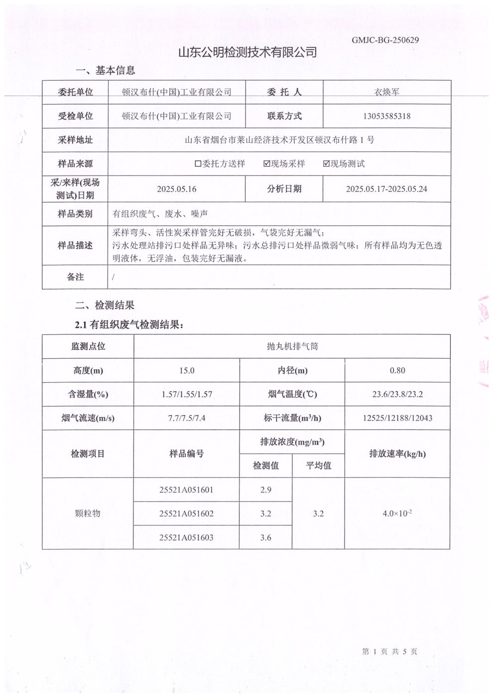 頓漢布什1季度檢測報告